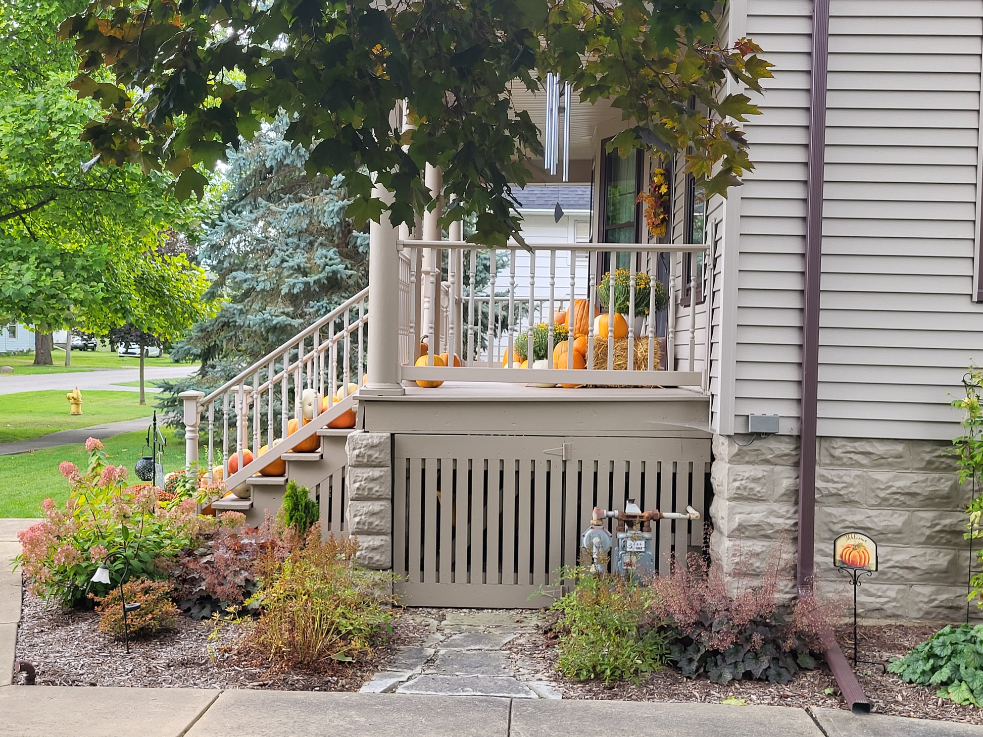 The Difference: This ultimate package provides triple the impact of our other collections with enough variety and volume to decorate your entire property. The dual straw bales and abundance of small accents plus living mums create endless styling possibilities for the most spectacular autumn transformation.